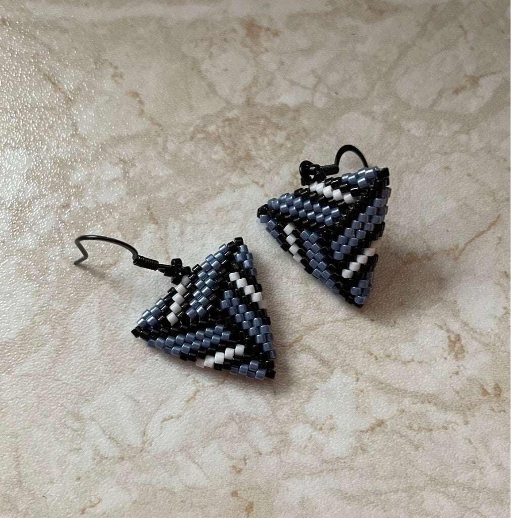 Hübsche kleine Ohrringe in Dreiecksform mit 3D Effekt. Diese Ohrringe sind von Hand geperlt aus Miyuki Perlen.